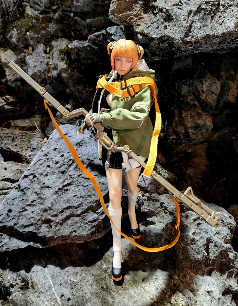 作為靜謐犬系列的第三彈,其獨特風格線條融合潮流時尚的設計風格,整體感覺令人既憐且愛!QC 不俗,可動性亦佳。本體為金屬骨骼的包膠素體。Grainne 的頭雕設計充滿漫畫感!其奪目的服飾及標緻的面相著色也為這款 12 寸人偶增加了時尚感覺。另外其 可變形法杖,法杖公文包,白色連帽半透明夾克及軍綠連帽披風等服飾設計既獨特且細緻,把其特有的風格表現得淋離盡致。但基於高踭鞋及腳踝設計,強烈建議玩家使用台座把玩。因為除了八字腳站姿之外,一般是極難站得穩的。