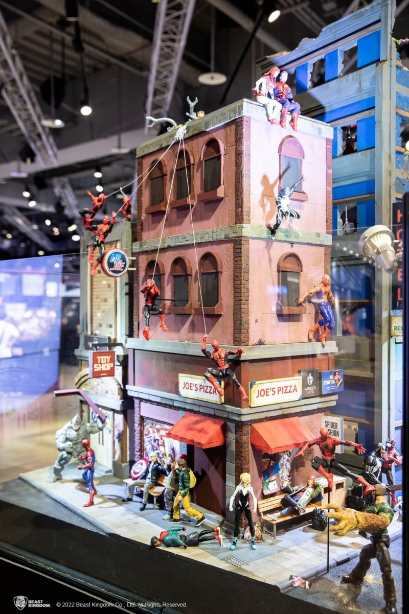 (生活中心/綜合報導)超級英雄來勢洶洶,期間限定於台北三創開展!英雄集結玩具特別企劃火熱展開,現場展示超過40款的不同風格展品,還有為紀念蜘蛛人60週年慶的特色展區,展區設計由「孩之寶」邀請到專業模型師喬老師精心製作大型城市場景,內含蜘蛛人60年來不同款式蜘蛛人及各種不同帥氣的英雄角色、以及令人恨得牙癢癢的反派人物,在360度的環景中,都有精細的設計,更呈現蜘蛛人經典飛躍的動態感,粉絲有看到喜歡的人物也都可以到商品販售區挑選。