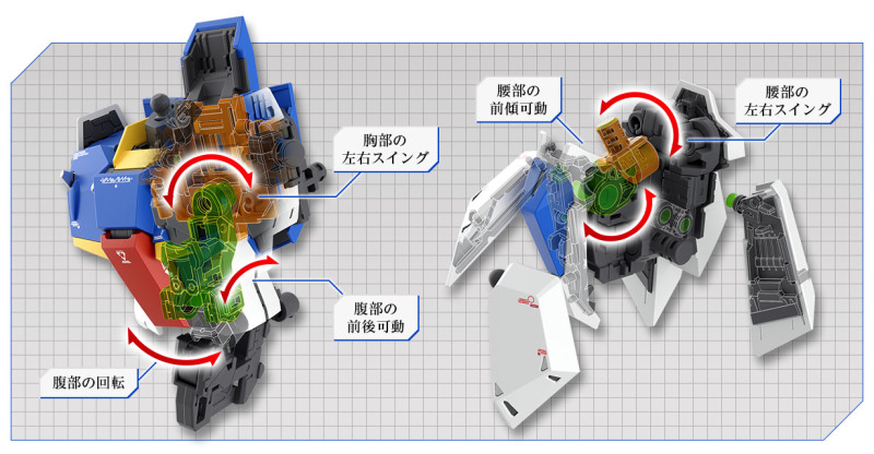 「Z鋼彈」的特色之一就是變形機構並沒有固定的設定,歷代鋼普拉商品都具備獨自的解釋方式。此次「MG 1/100 Z鋼彈 Ver.Ka」也藉由超精密的分件技術帶來更猛的完全變形機構,骨架設計了大量的可動部位流暢再現從 MS 形態變形為 WR 形態的過程,過去商品中可能較脆弱的胸部、腰部、髖關節等多處不僅有新設計的鎖定機構提高強度,更有精巧的五處朝各方向轉動的可動軸,讓 Z 鋼彈兼具複雜的變形、可動與穩定性。此外 WR 形態的起落架也內藏與機體中,無需替換零件就能展開。