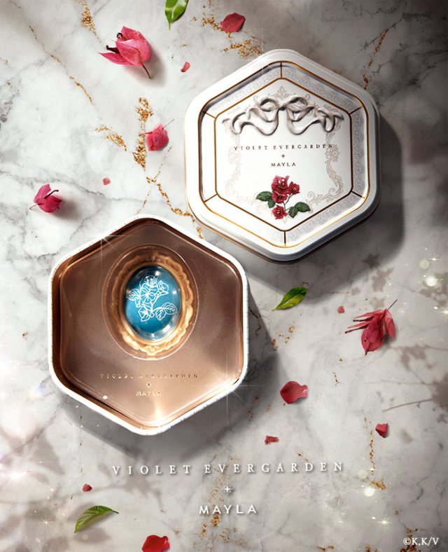 曾與《紫羅蘭永恆花園》、《庫洛魔法使》以及《新世紀福音戰士》聯名的日本大阪女鞋品牌 Mayla Classic,最近不只推出鞋款與耳飾。近日還宣布推出與《紫羅蘭永恆花園》聯名推出罐裝奢華巧克力,以精美設計的鐵罐中,藏有特別設計的巧克力,讓你贈送給最重要的人。售價為 3,300 日圓,目前以於官方網站開放預購。