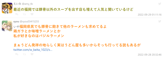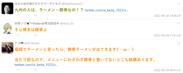 其實源自於一名推主表示,看了電視報導目前移居福岡是日本非常流行的,對於未接觸福岡的朋友,會考慮到一個問題就是「福岡的拉麵」就是豚骨拉麵嗎 ? 拉麵對於日本人來說可說是非常普及的食物,也吸引了不少福岡人網友參與討論。