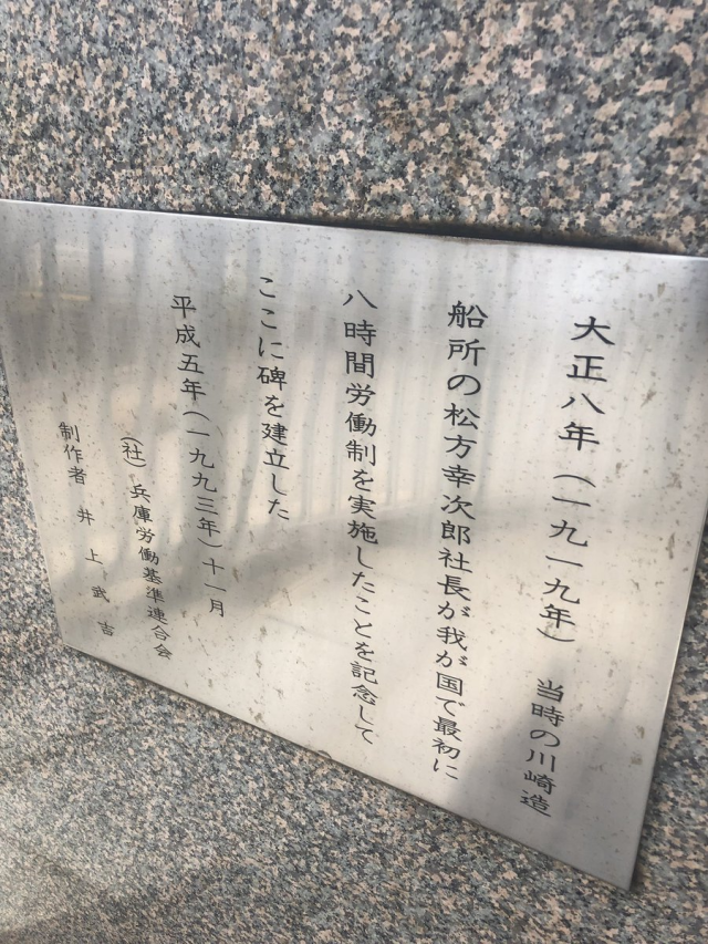 推主是從 Google 地圖查詢得知,而經由神戶市官方網站的資訊,這是在 1919 年日本推動了勞動基準法「勞工除了休息時間外,不得一天工作超過 8 小時」的紀念碑,至今已經實施超過 100 年了。