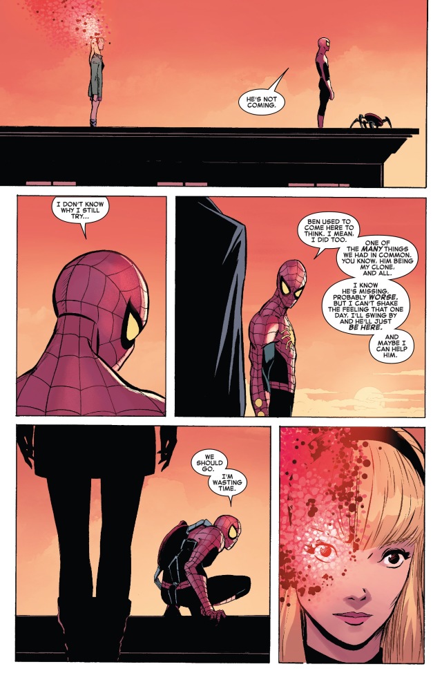 接下來蜘蛛人來到他的複製人班‧萊利(Ben Reilly)以前常待著的屋頂上,希望能見到他,卻很可惜地落空了。