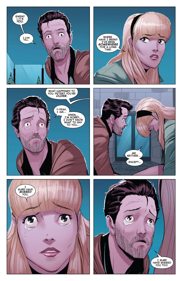 而在他還沒搞清楚狀況的時候,彼得一度以為自己已經瘋了,因為當年他沒能拯救的愛人關‧史黛西(Gwen Stacy)居然出現在了他的面前!始祖誰不選,居然選擇以這個形象現身來對他進行審判。