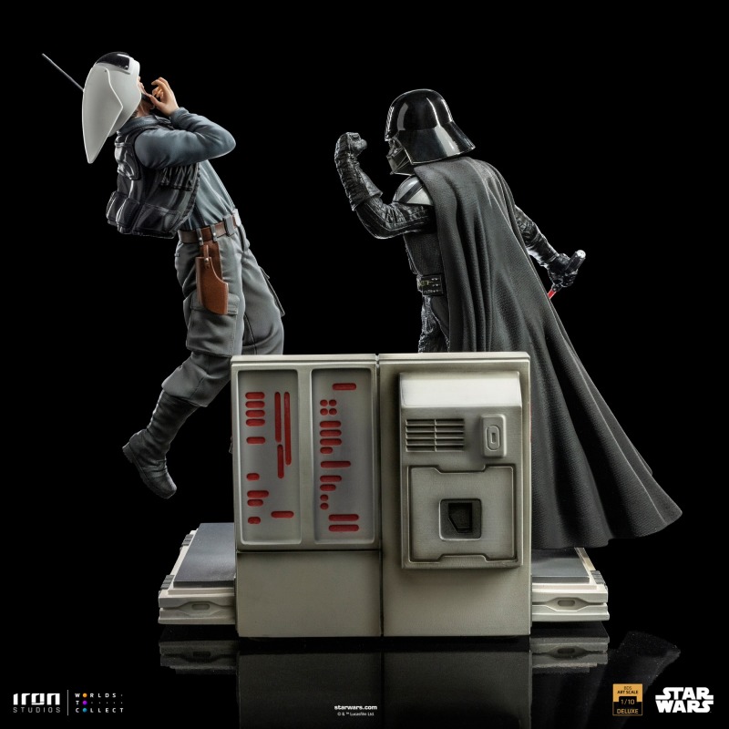 本作即是以此為題打造,以 24 公分的高度再現維達大君正施展原力對反抗軍士兵隔空鎖喉的樣貌,手中的光劍更可以呈現出一般、揮動兩種狀態,而在反抗軍這邊則利用船艦內部的走廊場景巧妙完成浮空的效果,極為痛苦的神情、彷彿要掙脫掉什麼的雙手都十分逼真,不管從哪個角度看都能感受到達斯·維達的恐怖!
