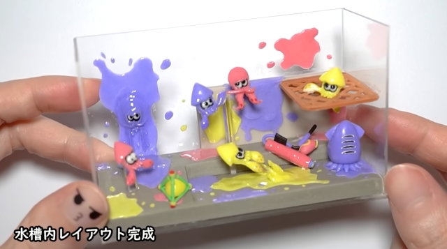日本一位專門製作黏土創作的作者「NendoZaiker」,就以魷魚和章魚的可愛模樣製作黏土場景,甚至充滿創意地以「水族箱」來呈現,當然對決時的小細節也沒有馬虎。