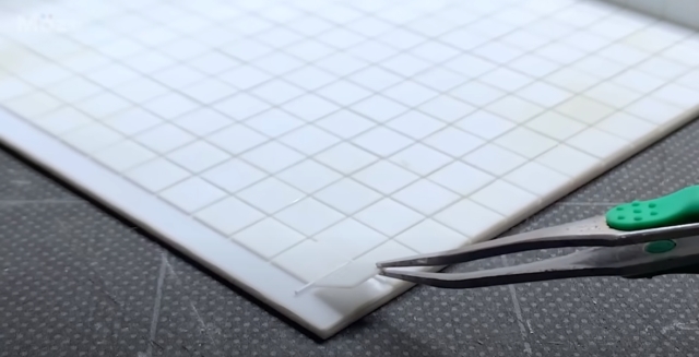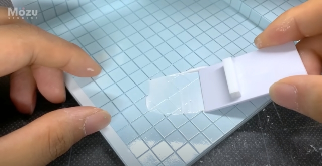 ▼比如這麼小的浴室磁磚,是比照真實工法,一片一片貼上去的。