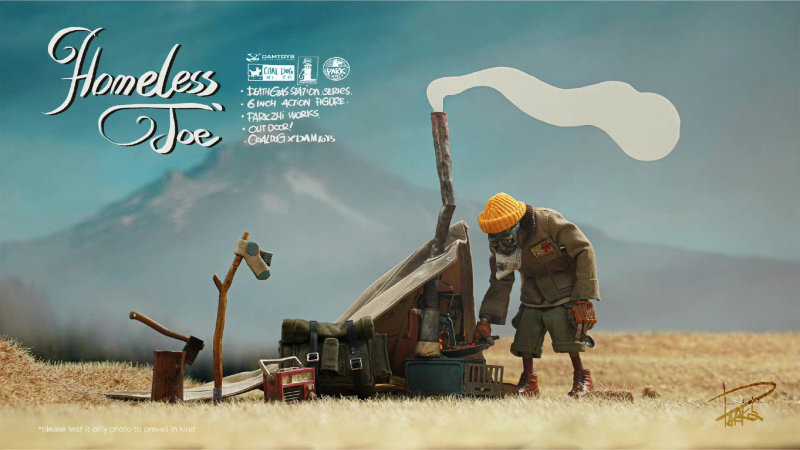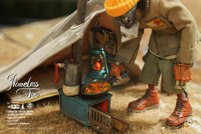 由 DAMTOYS 與煤廠黑狗(Coal Dog)工作室設計師「Park支」攜手合作的可動人偶系列「亡命加油站 (Death Gas Station) 」日前發表了最新商品「不想回家的喬」(Homeless Joe)!預計 2023 年第二季發貨。