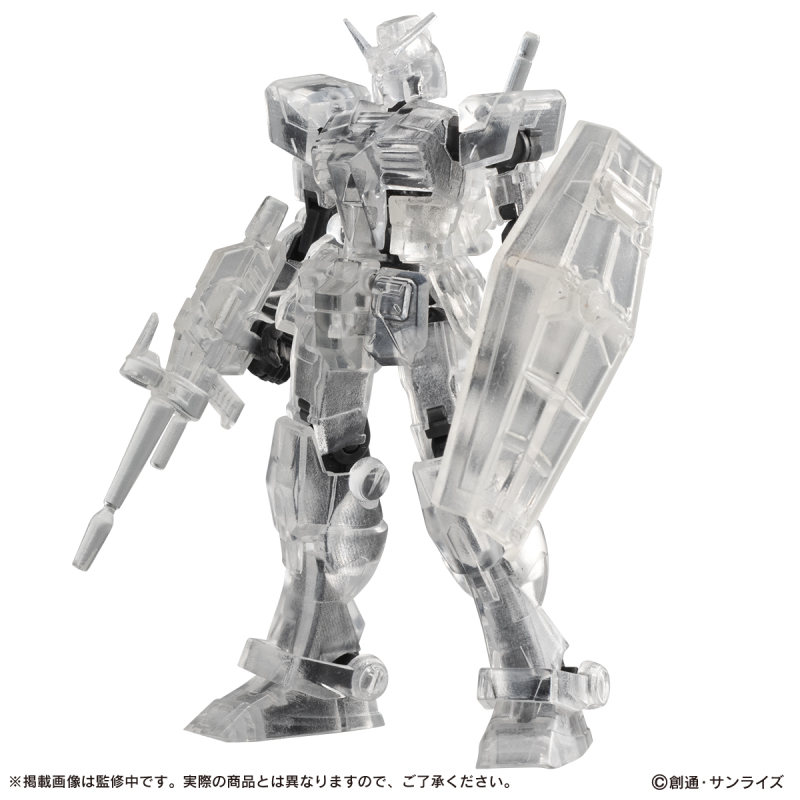 首款商品「RX-78-2 鋼彈」藉由重新詮釋的裝甲細節線條,製作出身形體態精悍的初代鋼彈,頸部、腰部、四肢各關節與裙甲具備可動機構,能夠作出自然的高跪姿姿勢。而武裝則附上基本的光束步槍、盾牌,搭配靈活可動關節就能把玩出帥氣戰鬥姿態。此商品將同步推出還原設定配色的「一般配色版」以及可透視內部骨架的「透明裝甲版」兩種類。