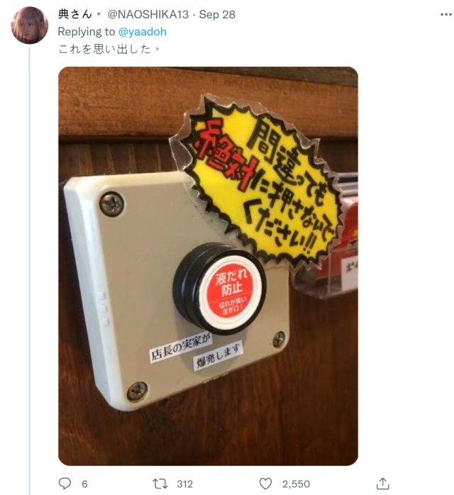 有住該地附近的網友表示這應該按了是不會讓新幹線停止,不過對於店內應該是會有影響的,還是不要亂動才對 XD。不過可見日本人真的很喜歡用這種文宣來告知大家,或許這也是日本人特有的幽默感吧 www。