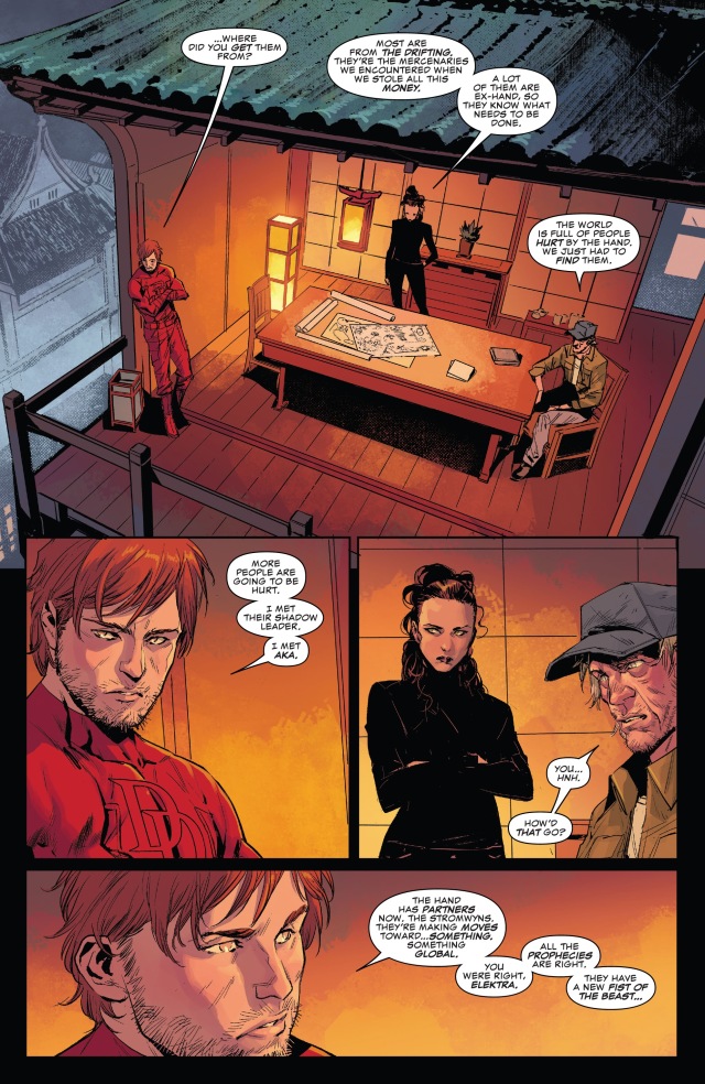 在現在由Chip Zdarsky所創作的《夜魔俠》連載中,麥特(Matt Murdock)與艾麗崔已經共享了夜魔俠的稱號,並為了阻止他們的宿敵日本忍者組織「魔掌幫」(The Hand,或譯手合會)而踏上了前往海外的旅程。