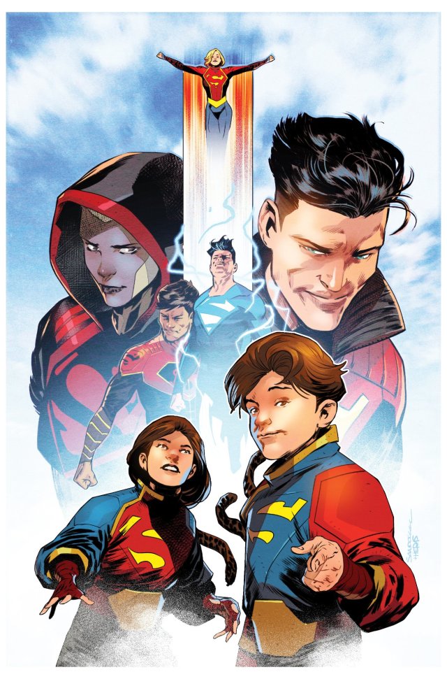 在繪師Dan Mora的設計稿中,我們可以看到大家都換上了新裝:二代超人Jon Kent除了本來的新裝外,還多了藍超人的型態;超少女(Supergirl)和超男孩(Superboy)也都換上了沒有披風的服裝;Natasha Irons再次作為鋼人回歸;來自中國,掌握陰陽之力的中國超人孔克南(Kong Kenan, Super-Man of China);以及一對全新的「雙胞胎」新角色。