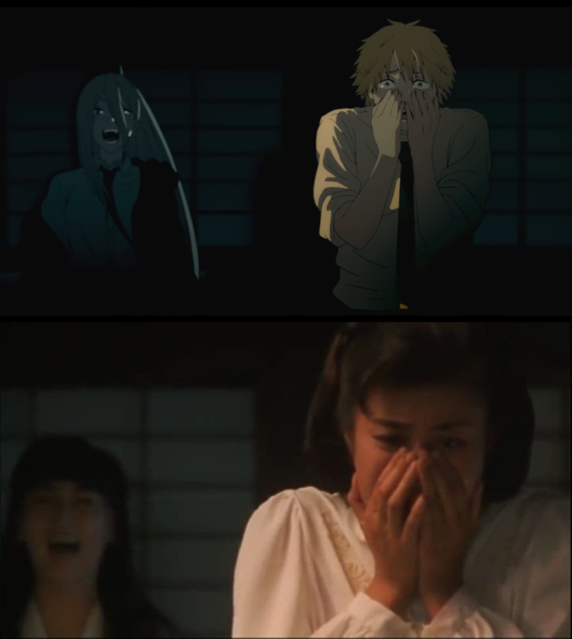 9.《貞子vs伽椰子》(貞子vs伽椰子),除了美國好萊塢電影外,於2016年所上映的日本恐怖電影,也成為《鏈鋸人》片頭曲畫面的致敬元素。