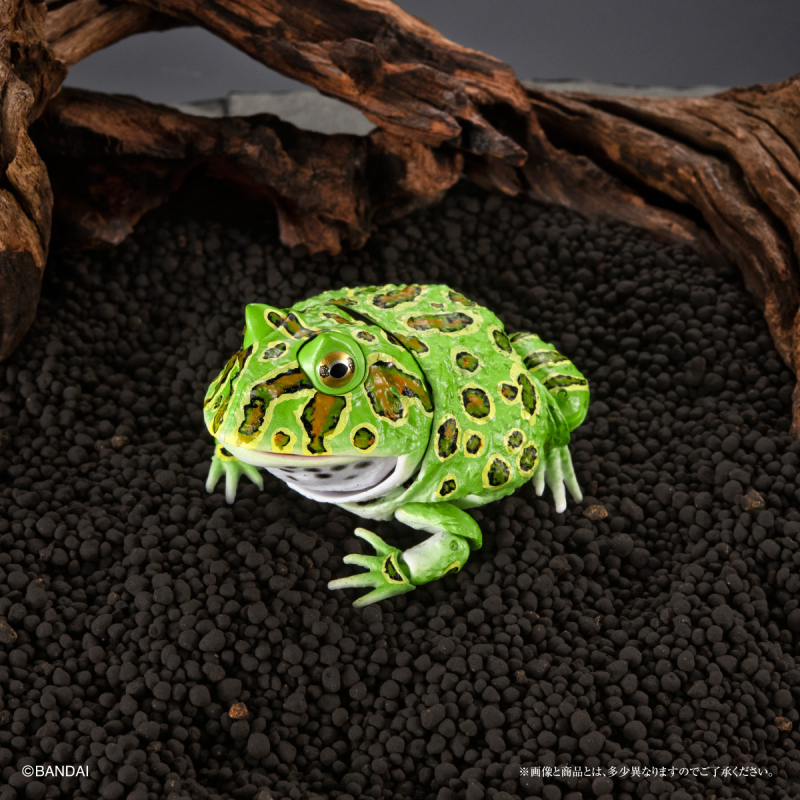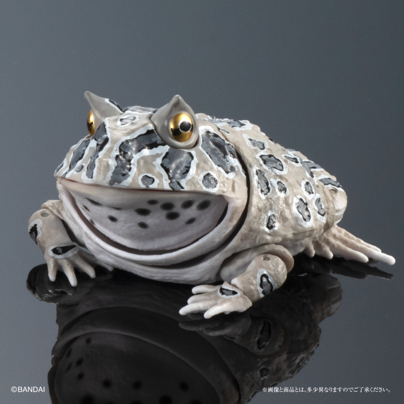 徹底再現角蛙的頭部、圓滾滾的大眼睛、寬大的嘴巴和胖胖的身體等特徵,皮膚上佈滿的疣狀顆粒以及特色花紋皆細膩打造,邀請到日本青蛙工坊的桶本和男老師擔任原型,原型師細川滿彥負責的可動構造、田中寬晃擔任精彩的塗裝,並由爬蟲類專門雜誌《Vivalium Guide》的編輯長冨永明氏負責監修,仔細還原各項擬真的細節!