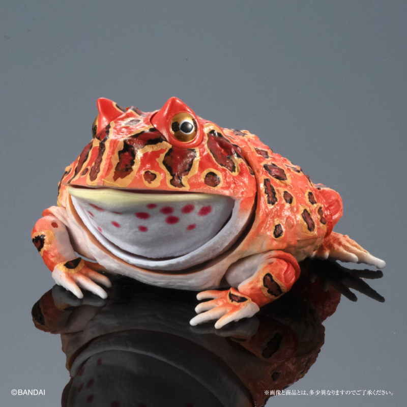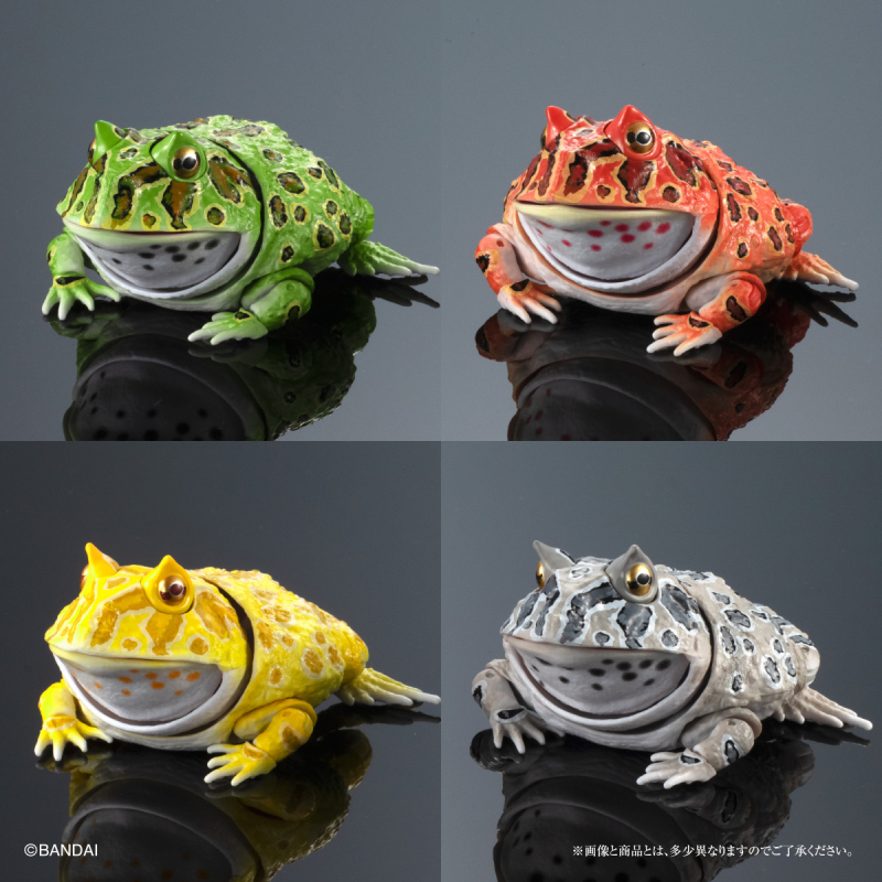 日本萬代公司轉蛋玩具品牌 GASHAPON 所推出的高級新系列「生物大圖鑑Ultimate」,在「睫角守宮」、「螃蟹」後,好評再推出人氣萌寵「角蛙」轉蛋,預計於 2022 年 11 月發售,共有四種款式,一轉參考售價為 1,500 日圓。