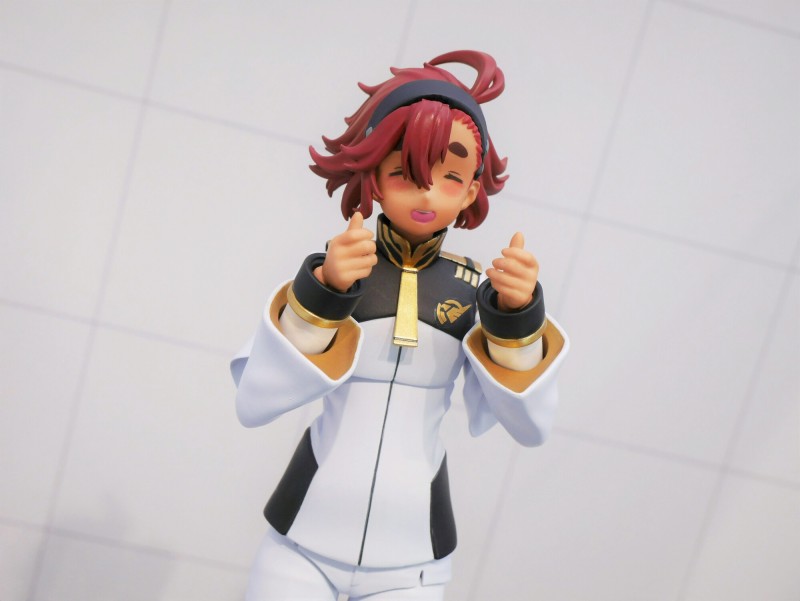 這次展出的「S.H.Figuarts 蘇萊塔・墨丘利」最新版試作品,對比先前展出的版本並沒有明顯修改之處,面相與複雜的髮型高度還原動畫設定,象徵決鬥衛冕者的白色制服具備不影響造型輪廓的可動分割,領口、袖口的黑底金紋皆使用色彩塗裝再現。新展出的部分則是首度公開的「驚訝臉」表情零件,能夠再現第一集中被觀眾惡搞 P 圖成遊戲王決鬥者的可愛受驚嚇姿勢!