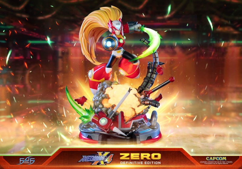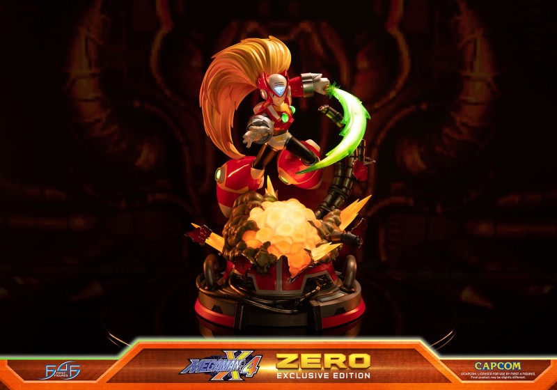 本作高約 43 公分,採用樹脂為材料打造,再現了特A級非正規獵人「傑洛」揮舞著 Z劍(Z Saber)自爆炸中跳出的躍動姿態,並依照《洛克人X4》的設定還原了傑洛搶眼的紅白主調鈦Z合金盔甲與超帥金髮,而肩甲、腿部構造,與設置於頭部兩側、胸口的圓形鏡片......等造型細節也考究製作,展現出爆炸情境、機械殘骸碎片的地台也讓這款傑洛雕像更具主題感!以上是標準版的內容。