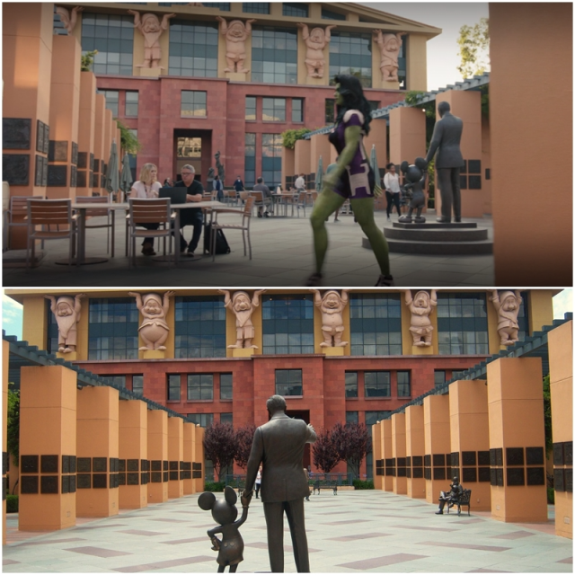 女浩克來到了加州柏本克的華特迪士尼工作室總部,穿過了有《白雪公主》七矮人雕像的「Michael D. Eisner 紀念大樓」,也是迪士尼公司的主要大樓。廣場上還有華特迪士尼先生牽著米老鼠的雕像。
