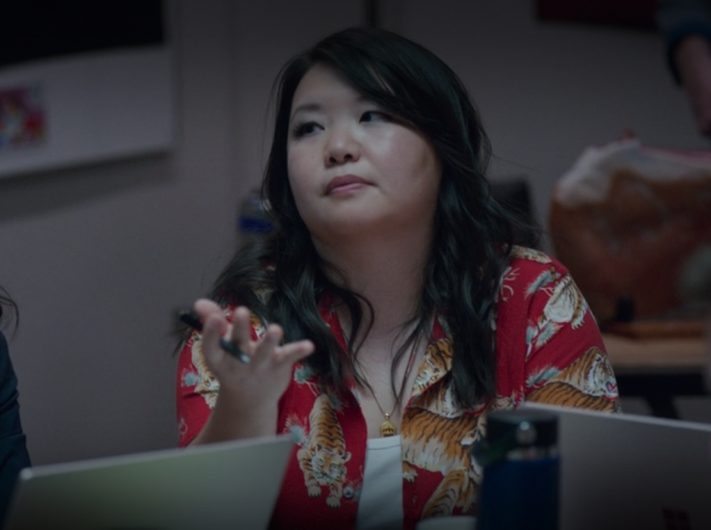 女浩克闖進影集編劇會議,可以看見本劇的總編導 Jessica Gao 理所當然地在這裡坐鎮指揮 ~ 也是她繼上一集短暫露臉(客串獲獎律師)後再度客串。