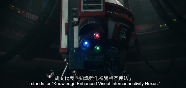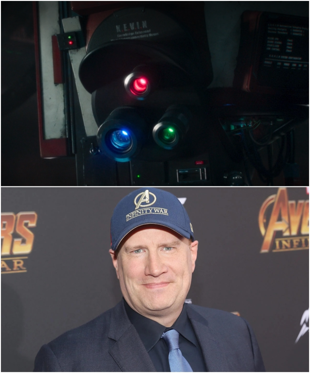 進入秘密基地後,磅礡的漫威主題音樂響起,「凱文」的真面目也隨之揭曉:並不是大家所期待的漫威影業總裁凱文費吉(Kevin Feige),居然是一個縮寫 K.E.V.I.N. 的人工智慧機器人。仔細看「凱文」的遮陽板也揶揄了凱文費吉的招牌棒球帽~