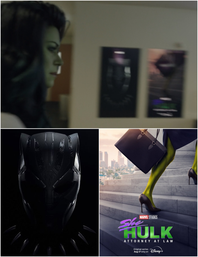 稍早女浩克再穿過漫威影業大廳時,牆上也掛著《黑豹2》和《律師女浩克》的前導海報~
