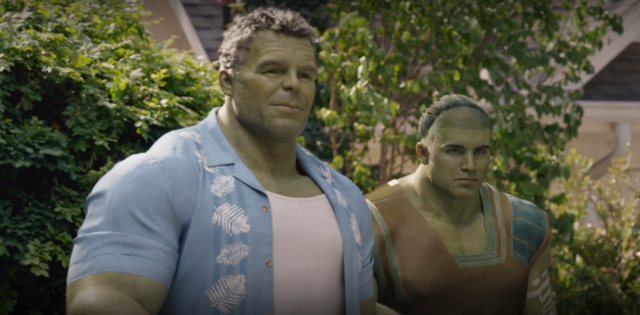 凱文要女浩克在鏡頭移開時變回珍妮佛,因為特效團隊已經去忙下一部作品,這當然吐槽了漫威近期讓人詬病的劣質特效。 不過,這時背景也響起《黑豹》主題音樂的鼓聲,暗示了即將在11月接檔上映的《黑豹2:瓦干達萬歲》。