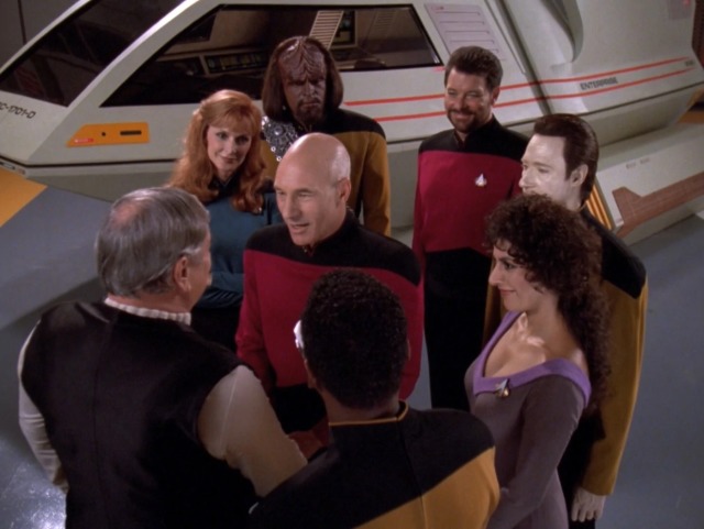由於這版劇本已經註定不會被採用,因此派恩也毫不避諱地接著揭露更多劇情細節:「《銀河飛龍》有一集叫做《Relics》(上圖),他們在那集找到受困在物質傳送器長達數十年的史考特,並和史考特展開了一場超酷的冒險。而我們的構想是:如果在凱文號與那艘巨大的採礦船相撞之前,喬治寇克就已經準備試圖要將自己傳送到他妻子、也就是他的兒子詹姆斯寇克出生的那架飛行器上呢?如果凱文號當時沒完全炸毀呢?— 如果其實還有一些殘骸在太空漂流呢?」