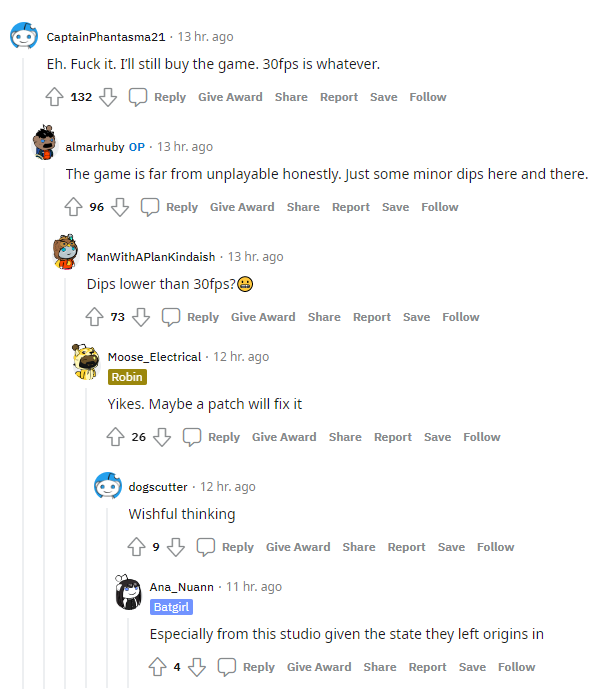 也當然在Fleur Marty的發言後,迎來更多對於《高譚騎士》的質疑,尤其對於追求最高畫面效果的玩家而言,不論多好玩的遊戲,都很有可能因為整體畫面不夠流暢、卡頓而勸退,再加上先前在實機影片中得到不甚滿意的動作流暢度,也的確讓原先預計拚首發的玩家們陷入了猶豫。