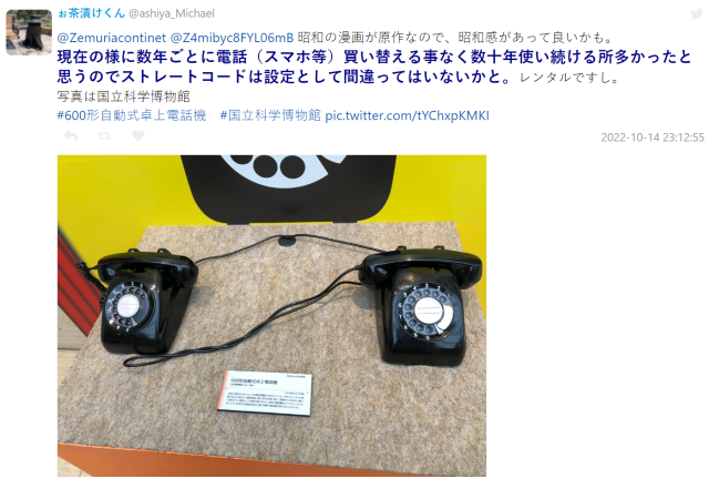 不過也有專業的網友表示,其實過去的電話並非只有捲曲線的,早在 30 年代到1950 年代,就是使用直線。目前放置在日本國立科學博物館的早期電話就是直線的,也不能說製作組製作錯誤,只能說做的太古老了 XD。