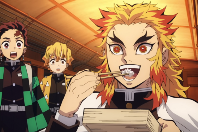 有看過電影劇場版的朋友一定不陌生,就是炎柱大哥在列車上大吃特吃的便當,邊吃邊喊「好吃」的景象絕對是本作的名場面。不少網友表示看到炎柱吃得那麼爽快,也好想吃吃看到底有多好吃 XD。