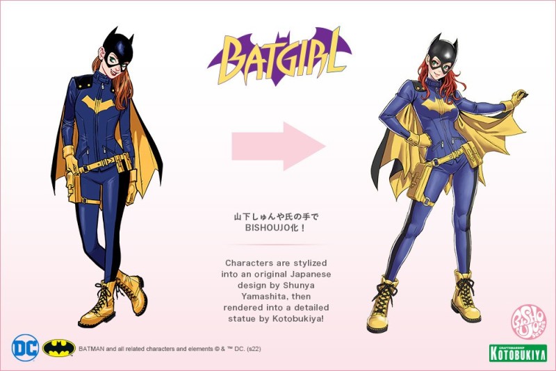 「DC COMICS美少女系列 蝙蝠女(芭芭拉.高登)」1/7 比例模型,時隔 12 年後,蝙蝠女終於以山下俊也繪製的插畫為基礎,再度回歸 DC COMICS 美少女 BISHOUJO 系列!採用最經典的蝙蝠女戰衣,並由原型師 ke 老師操刀,將蝙蝠女的面罩造型、翻蓋式按扣式披肩、皮衣套裝、靴子縫線等皆以更具現代感的形式再現,並且在服裝的皺紋和紋理有著仔細的刻畫。