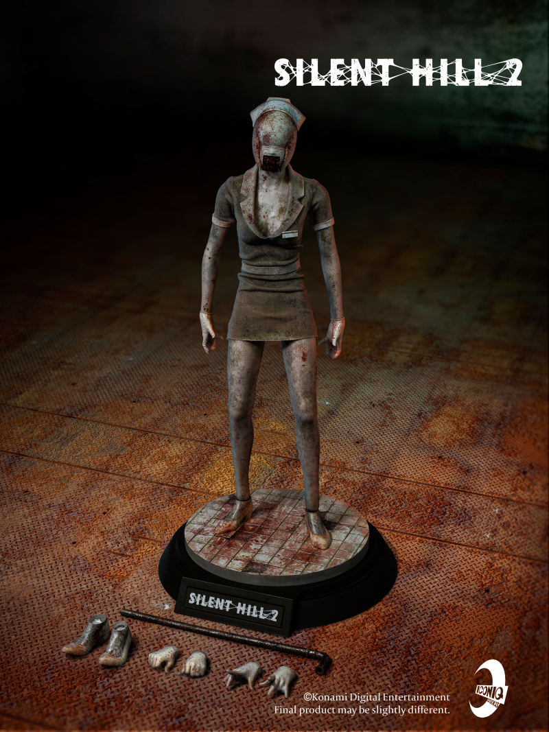 以 1/6 比例可動人偶、雕像為主力商品的新銳玩具廠牌 Iconiq Studios 於今(20)日正式發表了出自驚悚電玩《沉默之丘2》的兩款新作「泡泡頭護士」與「三角頭」!本篇將帶來「泡泡頭護士」(Bubble Head Nurse)1/6 比例可動人偶的商品情報。