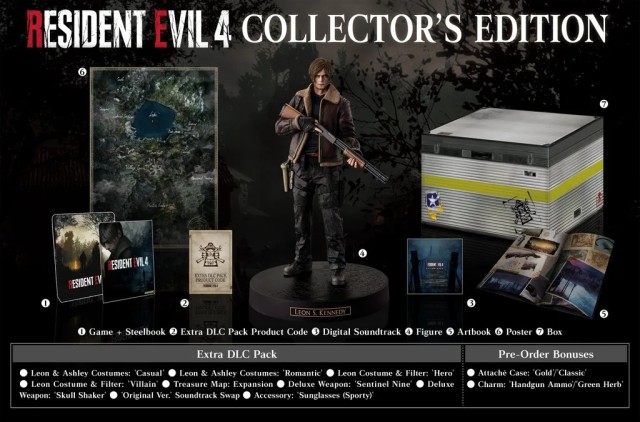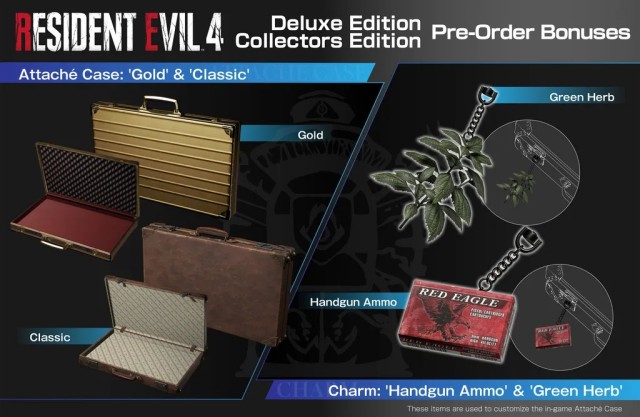 至於《惡靈古堡 4 重製版》目前也已經開放預購,並分為「一般版」、「豪華版」和「珍藏版」。選擇「一般版」的玩家,可以獲得「公事包:黃金版」和「飾品:手槍子彈」等特典。