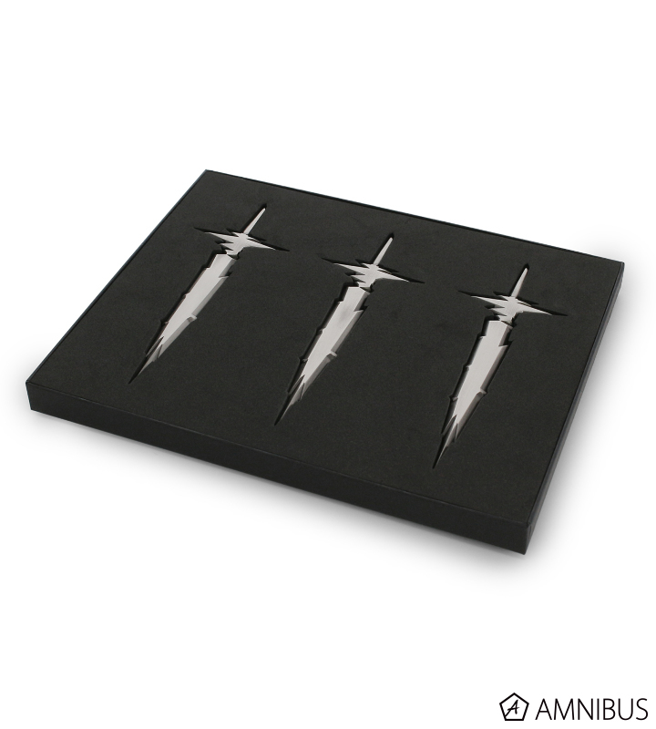 本次採用亞鉛合金為材料製作的「光之護封劍拆信刀」長約 15 公分,充分再現了設定中護封劍光芒萬丈的銳利造型,三支一組的設計讓你可以重現卡牌當中的圖案擺設,除了能讓你在拆信時一秒變中二,更是一款極具質感的收藏!下次出門跟朋友打牌時不仿也帶著這套光之護封劍拆信刀出門,直接在戰況不利的時候使出物理的光之護封劍(開玩笑的)。