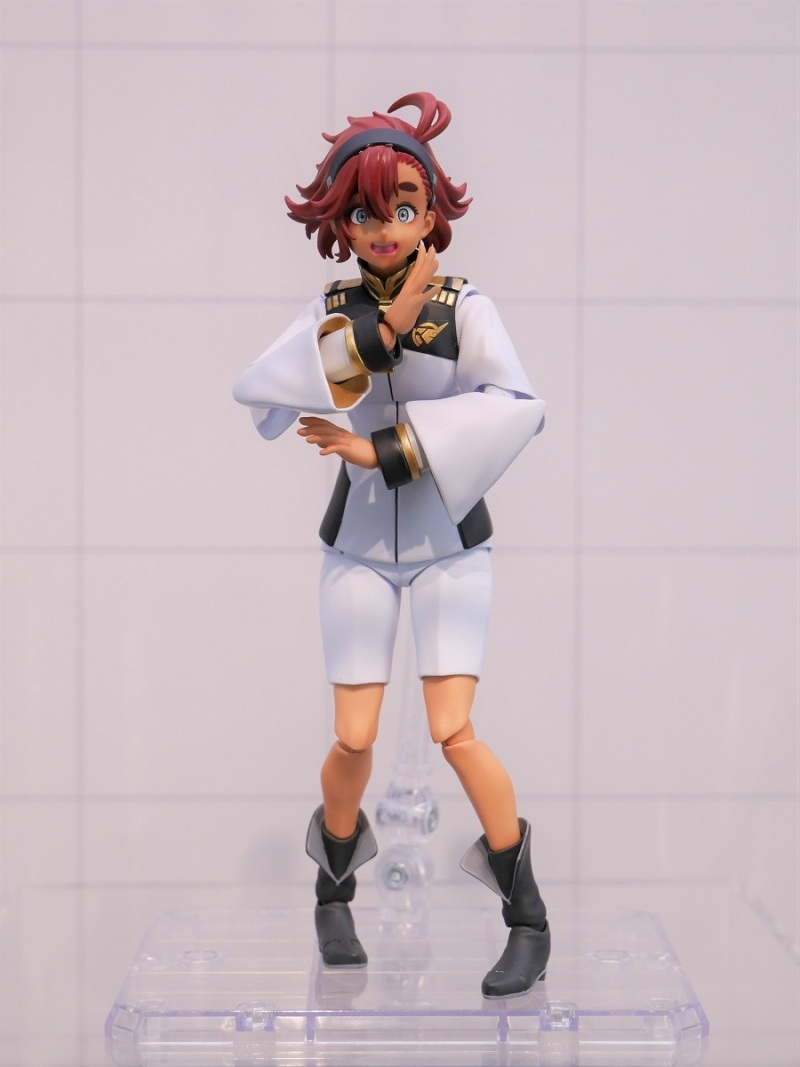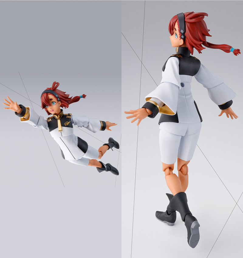 「S.H.Figuarts 蘇萊塔・墨丘利」將可愛的貍貓女主角製作成全高約 14 公分的可動人偶,造型忠實再現那頭凌亂的特殊髮型、象徵校園中決鬥衛冕者的專屬制服,藉由塗裝色彩表現髮箍、領口與袖口金色裝飾等細節,各個表情零件則採用轉印印刷技術忠實還原設定中粗圓眉毛、紅色眼影等可愛的五官造型。