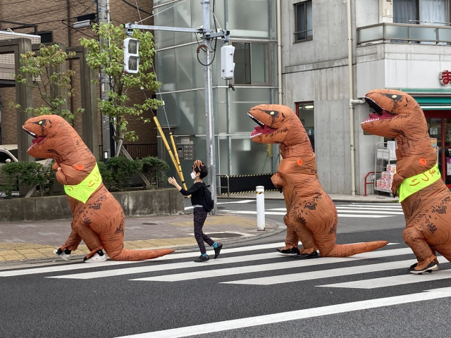 其實這個「元氣霸王龍祭典」已經是第三回了,是希望藉由這樣的遊行活動,讓大家忘卻在肺炎疫情的低迷壟罩下,提振地區的元氣,三隻霸王龍會在單位的引道下在城鎮街道中行走,也歡迎路過民眾與其互動拍照,讓大家更願意出門在蒲田一帶享受生活。