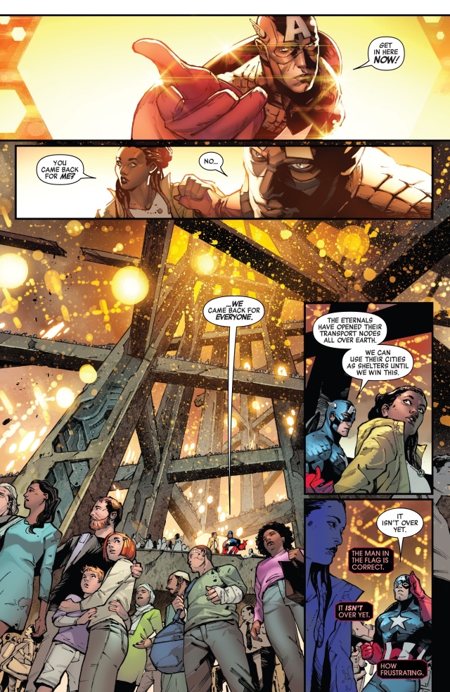 而在永恆族的協調之下,他們開啟了通往世界各地的傳送門,讓還活著的全人類都能暫時躲到永恆族的城市裡面避難。