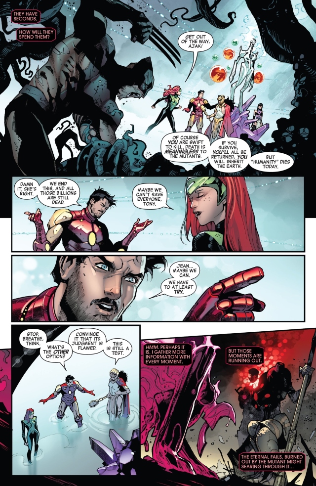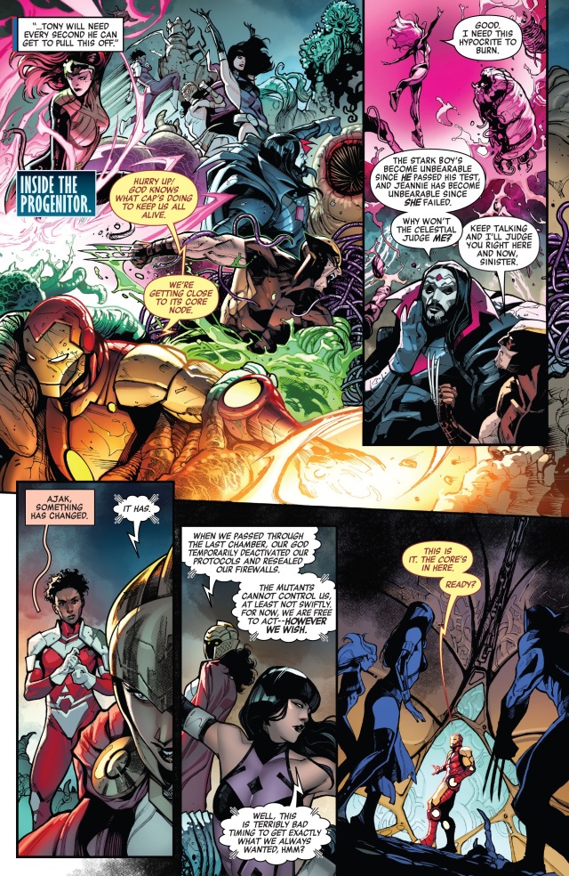 在始祖的體內,入侵小隊則還在與始祖的抗體戰鬥。然而出於某種理由,始祖遲遲沒有對凶兆先生(Mr. Sinister)進行審判......