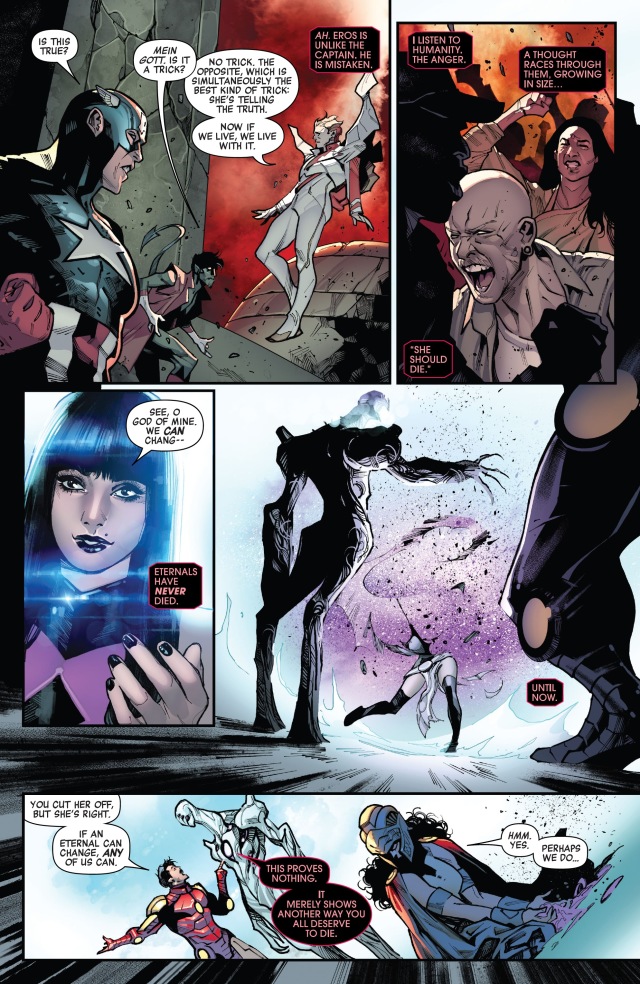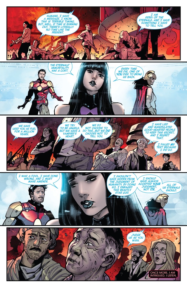 為了證明永恆族並不是如此的無法改變,瑟希(Sersi)決定向整個世界告知有關永恆族永生的真相:每當永恆族被殺死後,都會以一個人類的生命作為代價來重新啟動、復活那個永恆族。