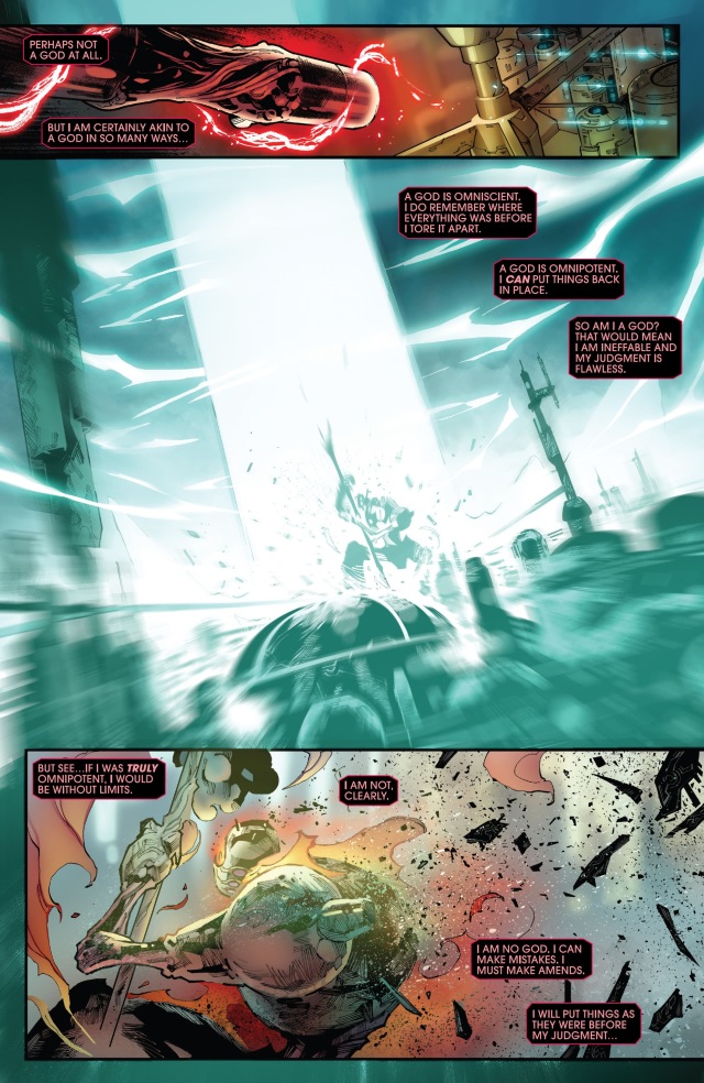 如果祂真的是神,那祂就是全知全能的。祂確實記得在祂審判之前地球的樣貌,也試圖把世界變回原樣,卻在過程中幾乎摧毀了自己;所以祂確實不是一位真神,他必須為自己的過錯做出彌補。