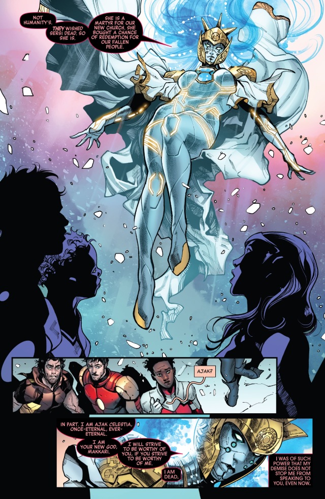 祂把自己的審判給解除,但是人類做出的審判卻還在,所以瑟希仍然死去了。而始祖剩下的部分則與艾賈克結合,成為了永恆族的新神——天體艾賈克(Ajak Celestia)。