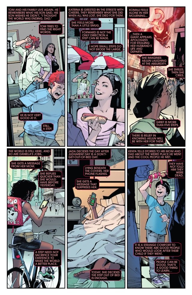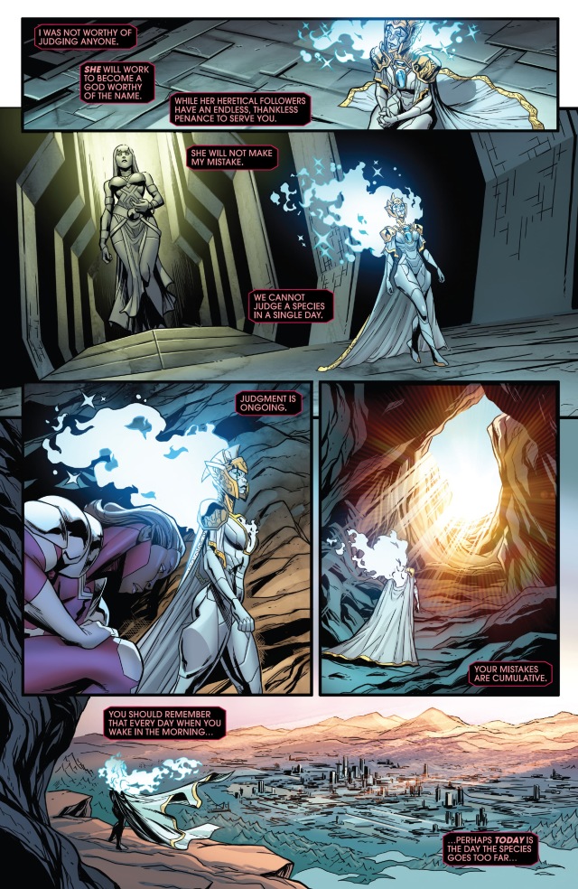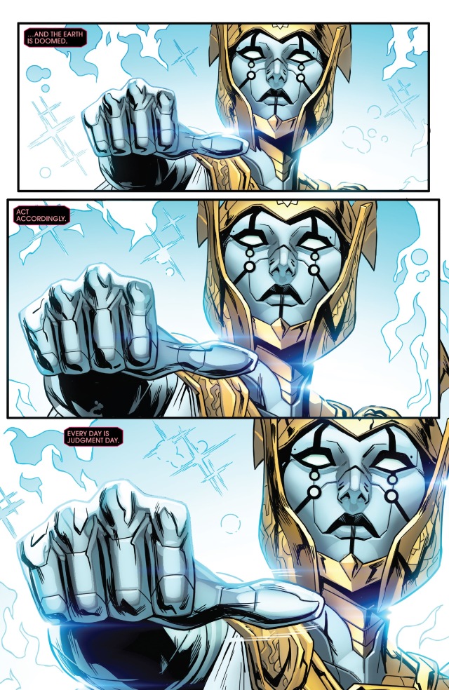 這個星期,漫威漫畫大事件《審判日》(A.X.E.: Judgment Day)總算來到最後一期了!在永恆族至尊對變種人發起的襲擊導致復仇者(Avengers)、X戰警(X-Men)和永恆族(Eternals)三方勢力合作創造出一位永恆族的新神「始祖」(The Progenitor)來阻止這一切後,始祖卻決定要對整顆地球以及其上的智慧生命進行長達24小時的審判。