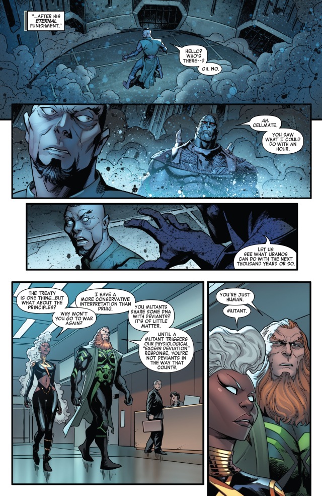 掀起戰爭的罪魁禍首諸克(Druig)被丟進了烏拉諾斯的牢房中,承受永恆的折磨;祖拉斯也承諾不會再對變種人民族出手,只要對方不會像變異族(Deviants)一樣「過度變異」就沒事。
