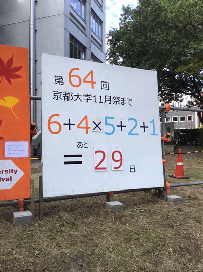 這個看板連京都大學的講師看到都讚嘆學生有這般創意,感覺每天都可以看到不同的倒數算式。