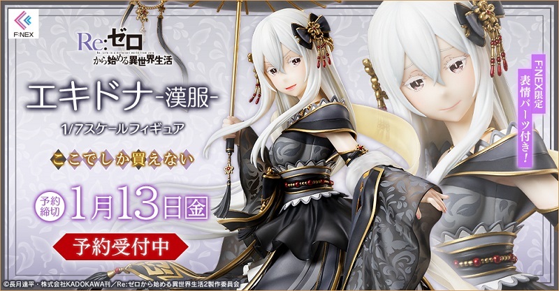 知名景品玩具製作公司Furyu(フリュー株式会社)旗下高品質玩具品牌「F:NEX」,以大人氣《Re:從零開始的異世界生活》為主題,在「雷姆-漢服」後,再度推出中國服飾風格的「艾姬多娜-漢服-1/7 比例塗裝完成品」。參考售價為 29,700 日圓,預計將於 2022 年 11 月開放預購,2023 年 10 月發售。