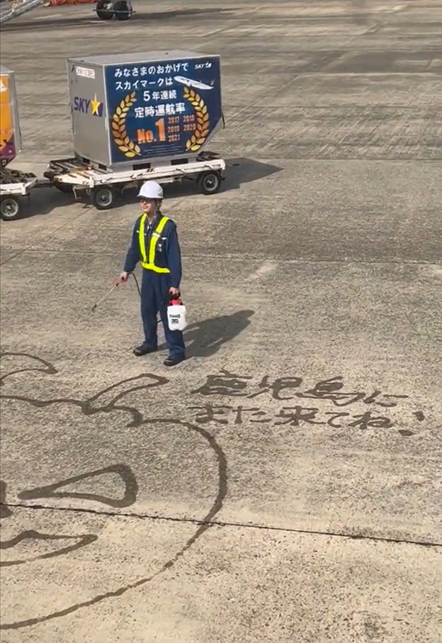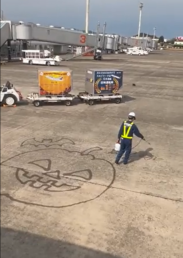 近來因為日本終於開放國外旅客入境旅遊,不少人終於等到疫情後能到日本一覽風情,除了常見的東京大阪外,九州南端的「鹿兒島」也是不少人喜愛的旅遊v選擇。最近在推特上,出現了在鹿兒島機場飛機跑道內,出現了地勤人員正在進行「萬聖節畫作」的影片,引起了網友討論,沒想到居然有這樣的工作 !