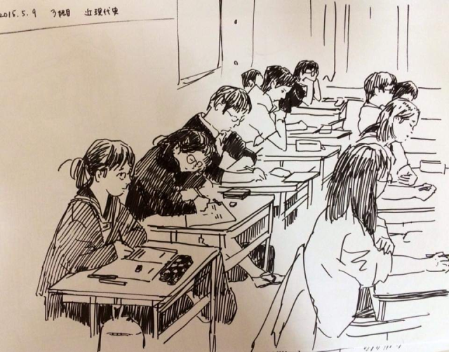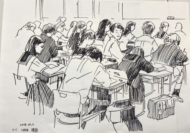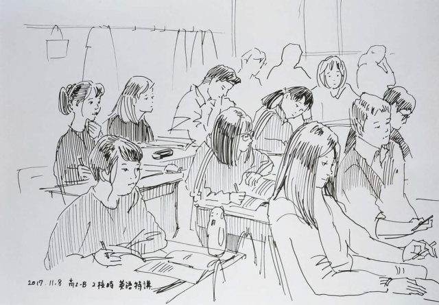 這些插圖都是推主母親在教學參訪時親手用 A4 紙張繪畫而成,可以看到同學們坐在座位上看著老師上課的樣貌,有如照片般記錄下推主上課時教室的一舉一動,雖然沒有上色,但依然可以感受到用心的味道。