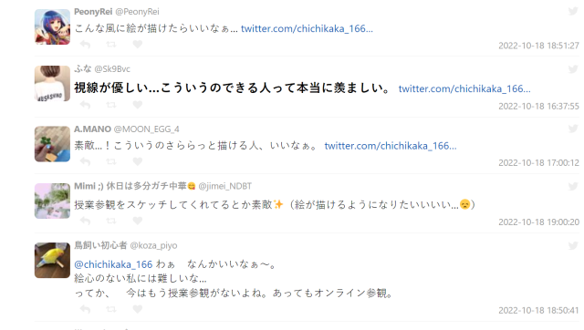 相信不少電電夥伴多少都會有畫圖的習慣,或許功力不強,不過也是生活中的一種興趣展現。日本推特上最近出現了引起話題的插圖,推主おの ( @ chichikaka_166 ) 分享了自己學生時代時,母親到自己上課的教室進行教學參訪時繪製的圖片。精細的筆觸與人物畫面讓不少網友驚豔,有如漫畫般的場景一樣,不禁懷疑這位媽媽是不是專業人士 ( ? )