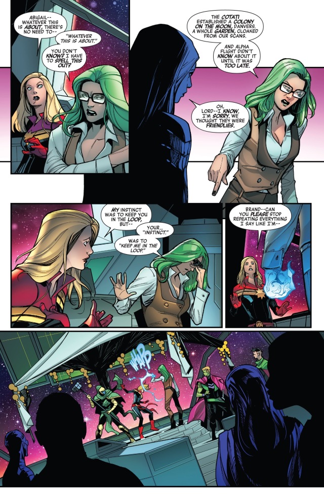 稍早以前,地球在大事件《異帝國》(Empyre)中遭到植物種族柯塔蒂(Cotati)的入侵而險些毀滅。當時身為阿爾法飛行隊指揮官的阿比蓋爾因為沒在第一時間被告知相關消息,導致應對速度跟不上。為此,她強力怪罪在復仇者(Avengers)們,尤其是身為前任指揮官的驚奇隊長(Captain Marvel)身上。以此作為道德制高點,她宣告自己從指揮官的位置上離去。