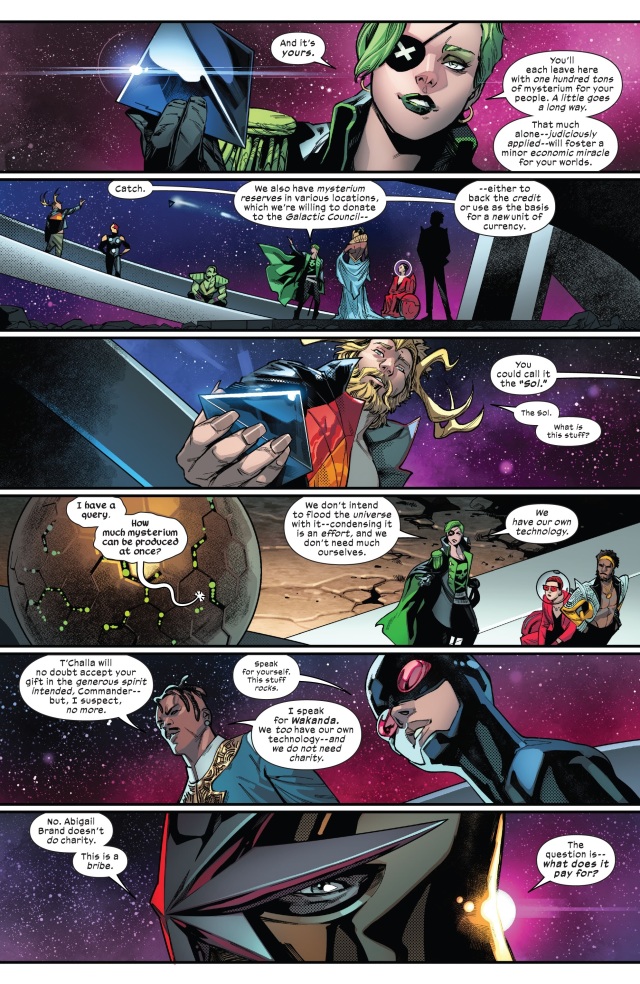 但是這當然不是一個無私的提議:為了這筆秘金屬,銀河議會必須將阿拉科星作為太陽系的代表,也就是將星際事務交到了變種人的手上,而非人類。